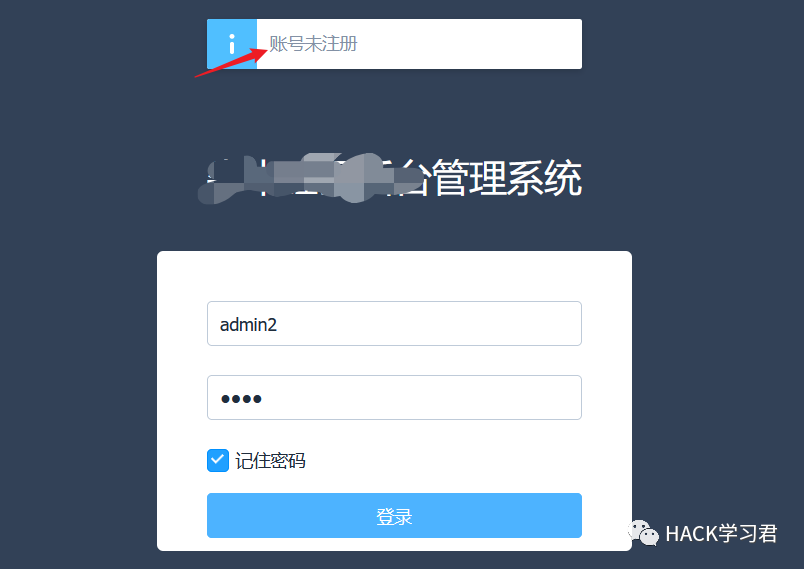输入admin2显示账号未注册,所以此处存在账号枚举漏洞