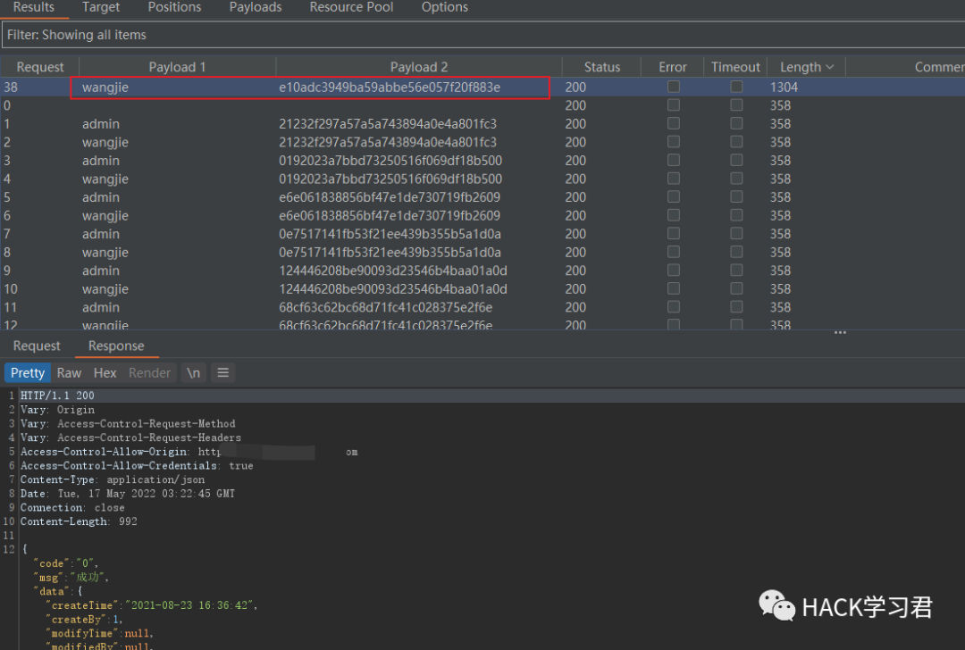 使用这两个账号然后对密码进行爆破。因为该密码进行了md5加密,所以爆破前进行md5加密就行。如下成功爆破出来了