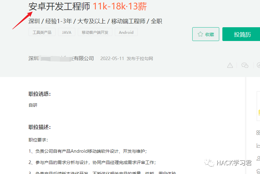 由于在http请求数据及浏览器插件中都没找到该网站使用的什么脚本语言。于是我搜索该app对应的公司,然后看他们公司的招聘岗位。发现正在招聘安卓开发,好家伙,那不就是java吗