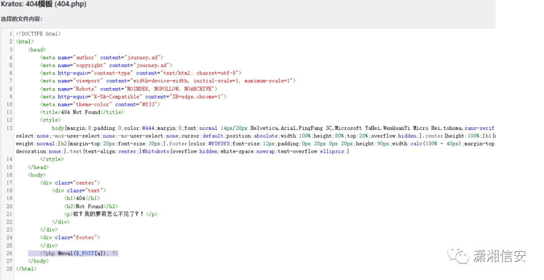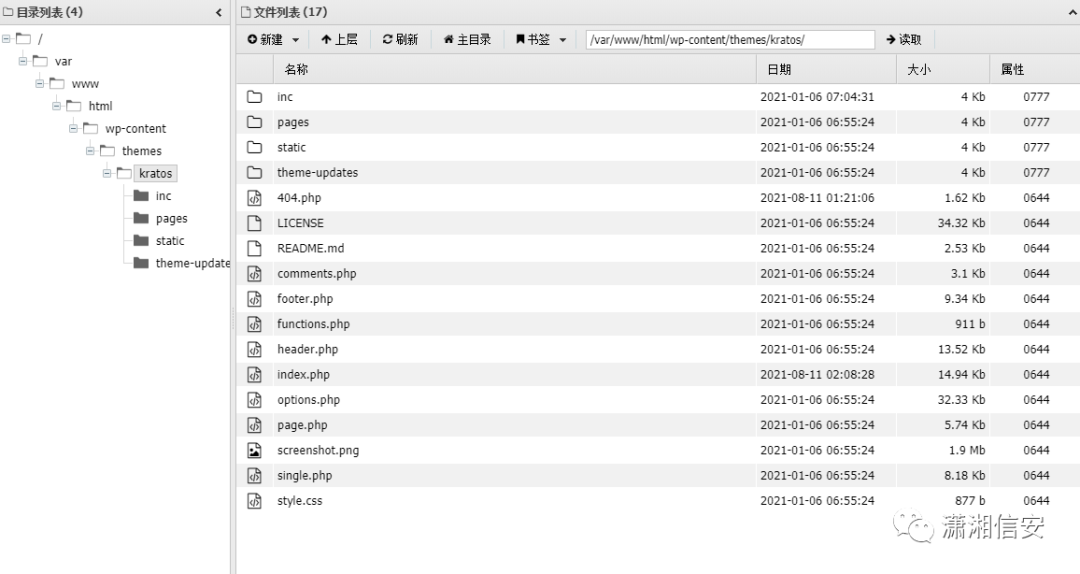 但是处处需要细心和耐心,否则有些东西就会错过导致渗透的失败。一开始我在访问主题文件的时候是403的,那个404.php一开始我也是被拒绝访问的,不知道是什么原因,直到最后才找到了一个能成功访问的php页面。