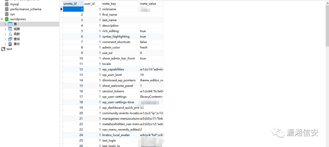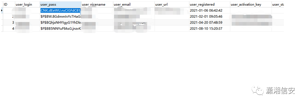 随便整个mysql远程连接工具,找找管理员密码, WPS的账号信息存在wp_users里面