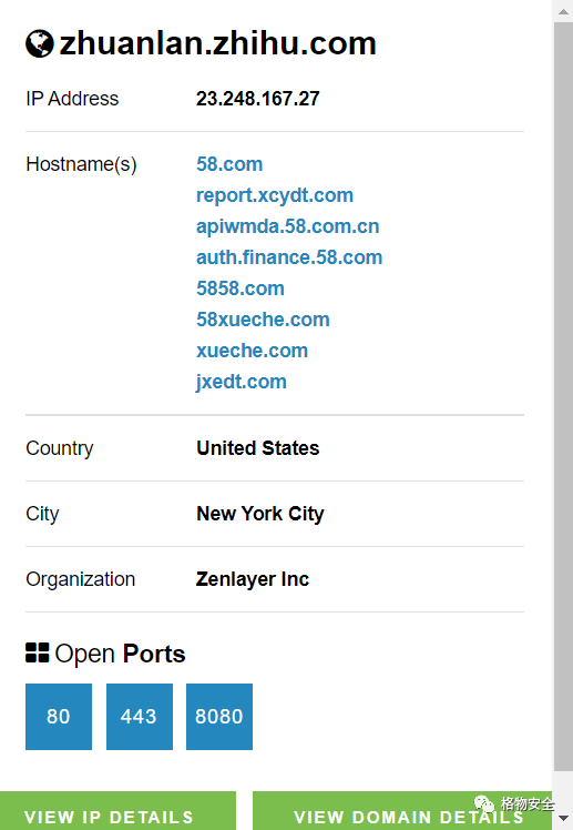 Fofa Pro View 插件会告诉您网站的托管位置(国家、城市)、IP 的所有者以及开放的其他服务/端口。