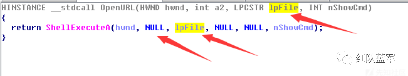 也就是说,url.dll中导出函数OpenURL的参数lpFile决定API ShellExecute要打开的程序或文件路径
