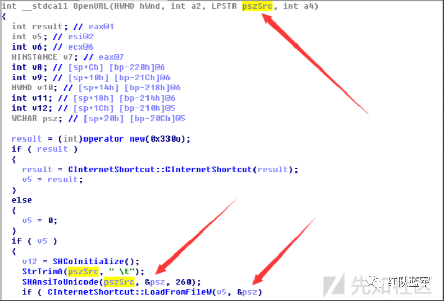 使用IDA加载ieframe.dll,查看导出函数OpenURL,伪代码如下图