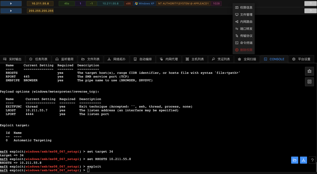 接下来以攻击一台XP作为示例,使用msf的基本的流程如下: