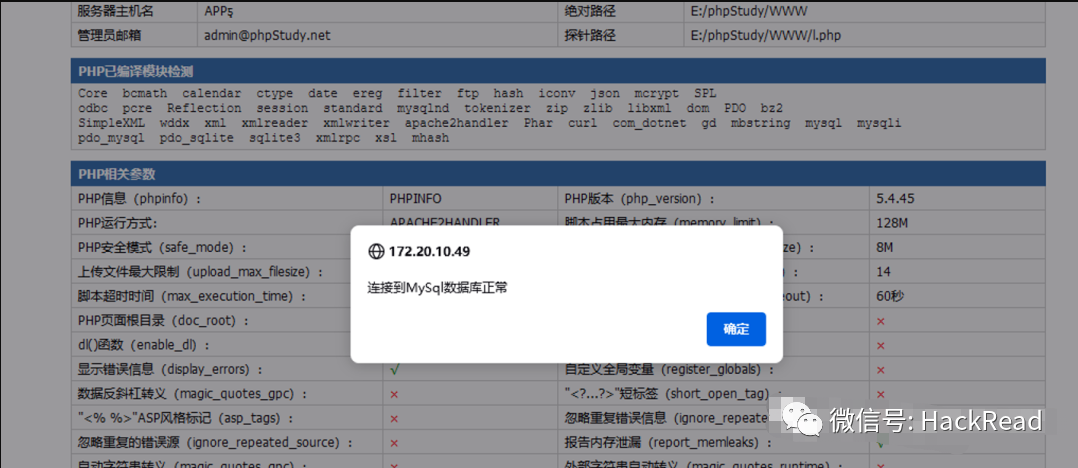 发现目标存在phpStudy探针页面,且该探针页面存在mysql弱口令root,root