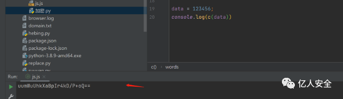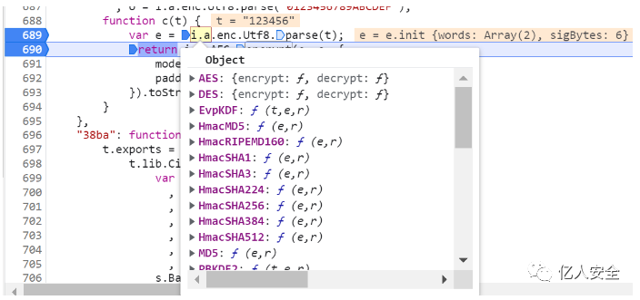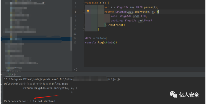 光标移到i.a处,可以看到使用的是crypto-js库中的方法,所以可以将i.a替换为变量CryptJs(因为js文件中定义了 const CryptJs = require('crypto-js');所以可以直接使用CryptJs替换i.a)