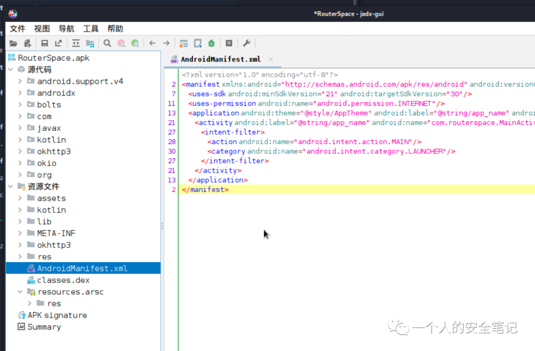 从该地址下载包:http://10.10.11.148/RouterSpace.apk,本地使用 apktool 工具对其尝试源代码还原。
