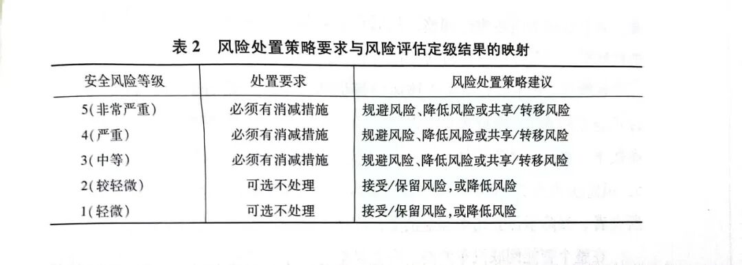 按照行业最佳实践考虑,在通常情况下,风险处置策略要求与风险评估 定级结果之间的映射关系如表2所示。