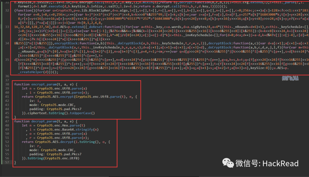 1.将 encrypt_param() 函数中调用的 CryptoJS 代码找到,一并复制下来,和加解密函数放一个 JS 文件中。