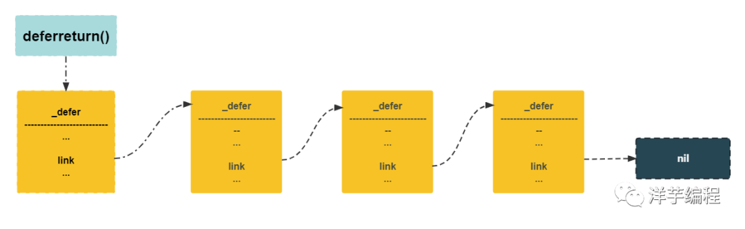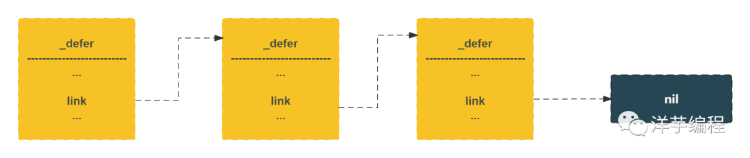 link *_defer // next defer, 链表指针,可以指向栈或者堆
