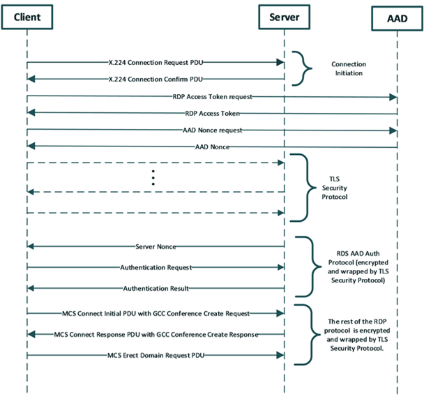 PROTOCOL_RDSTLS 是 PROTOCOL_RDP 协议增强版本,通常应用于服务器重定向场景(RDP 协议负载均衡、堡垒机等),其数据保护、加密解密、完整性验证等与均由 TLS 来完成,用户身份认证,则是在 PDU 协商阶段,交换 RDSTLS PUD 来完成,而 PROTOCOL_RDSAAD 则是 PROTOCL_RDSTLS 的变体,其身份验证功能由Azure AD准入设备(Azure AD-joined device)来实现。这个协议一般不服务于常规的服务器或个人办公终端,而且经过测试,几乎所有兼容 PROTOCOL_RDSTLS、PROTOCOL_RDSAAD 协议的 RDP 对象,都会同时兼容 PROTOCL_HYBRID、PROTOCOL_HYBRID_EX 中的至少一个,所以从暴力破解这一角度来说,我们可以忽略这两个协议。
