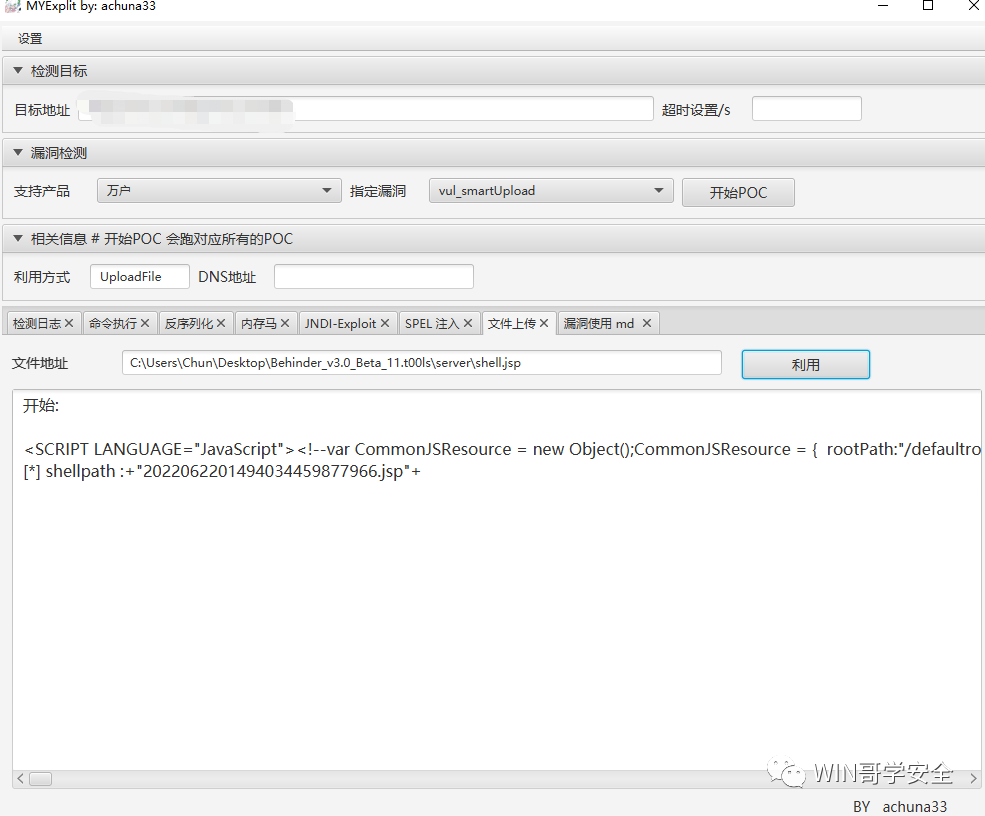 仅供安全研究与学习之用,若将工具做其他用途,由使用者承担全部法律及连带责任,作者及公众号不承担任何法律及连带责任。https://github.com/achuna33/MYExploit/releases