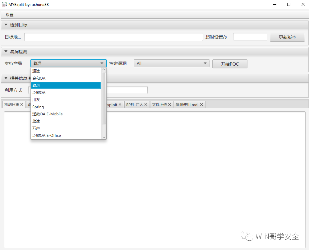 01项目介绍一款扩展性高的渗透测试框架渗透测试框架(完善中)OAExploit一款基于产品的一键扫描工具。出现卡死的几种情况:1.点击按钮太快 2. 打印log 的异常02工具展示03声明仅供安全研究