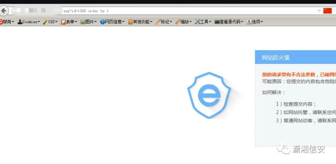 在后面加上 order by 1 被安全狗拦截