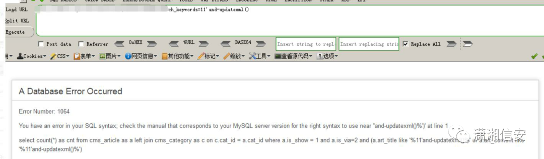 keywords=11'and-updatexml(0x1,,0x1)and'