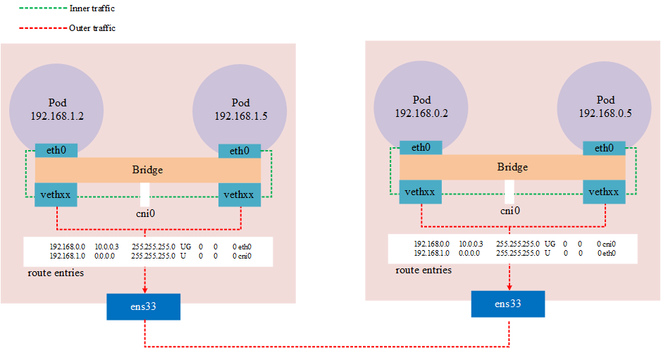 Notes:因为是通过路由方式,集群的 cidr 至少要配置 16,因为这样可以保证,跨节点的 Node 作为一层网络,同节点的 Pod 作为一个网络。如果不是这种用情况,路由表处于相同的网络中,会存在网络不可达