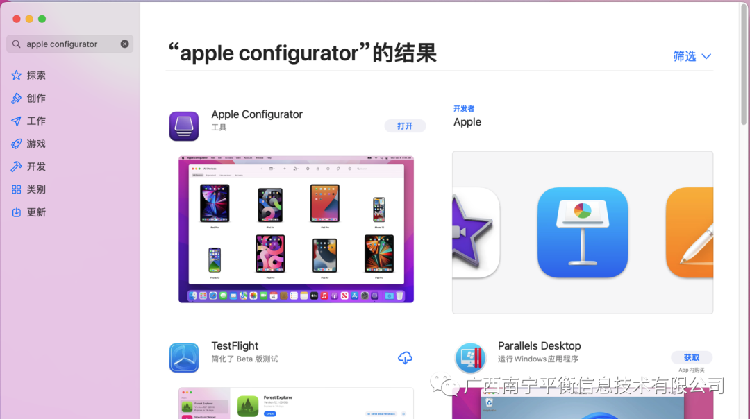 打开 Mac 电脑上的App Store,搜索Apple Configurator并下载安装。