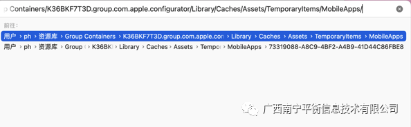 就可以看到我们下载下来的ipa安装包。将安装包拷贝到本地,等拷贝结束后再去点击“停止”刚才的弹框,此时我们会发现刚才的临时目录不见了。