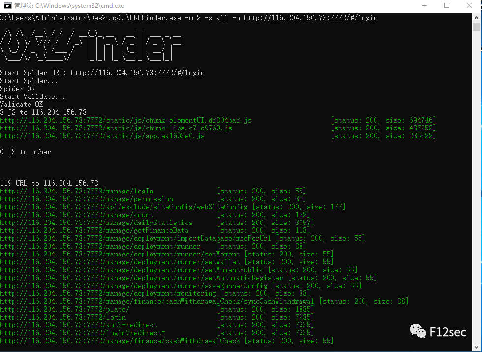 URLFinder.exe -u http://www.baidu.com -s all -m 2URLFinder.exe -u http://www.baidu.com -s 200,403 -m 2批量url时使用