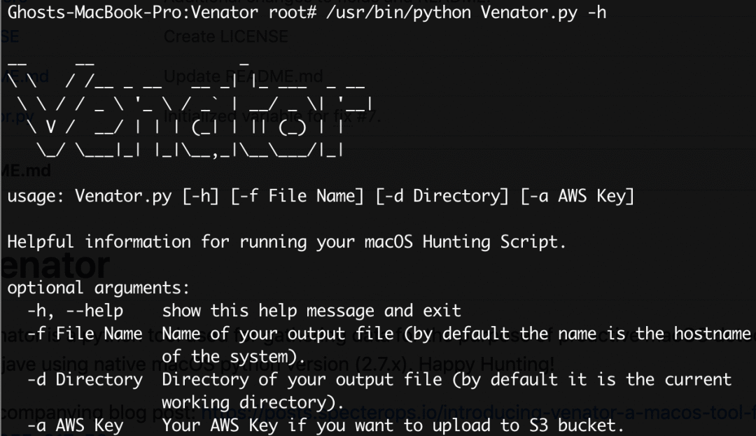 Venator 是一个用于主动检测并收集macOS数据的 python 工具,获得数据后供分析哪些是恶意活动,macOS几乎很少有类似的工具。使用原生 macOS python 版本(2.7. x)开发,支持 High Sierra 和 Mojave。