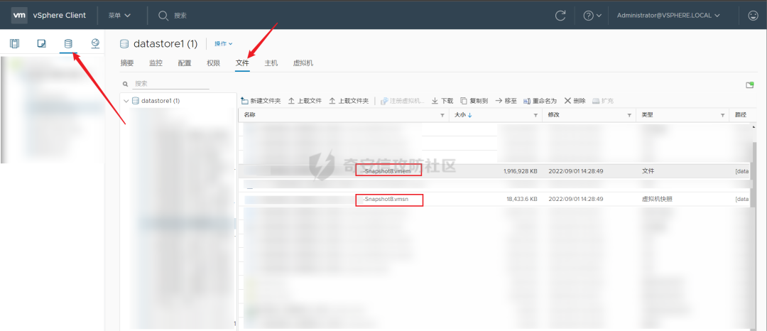 也可以通过 ssh 登录ESXI服务器上,通过 find 找出相应的 vmem 和 vmsn 文件拷贝到本地