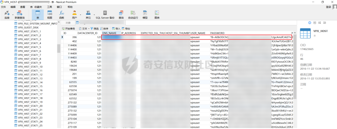 在实际情况中也碰到使用 MSSQL 数据库的情况,这时候直接使用 navicat 进行连接,搜索 VPX_HOST 表