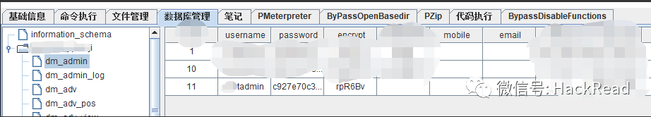 拿到的数据库为阿里云RDS,使用Navicat连接数据库,查看admin表,系统拥有两个admin账户,表中含有密码和盐字段。这里百度了一下FastAdmin忘记密码,根据帖子内容添加了一个账户。