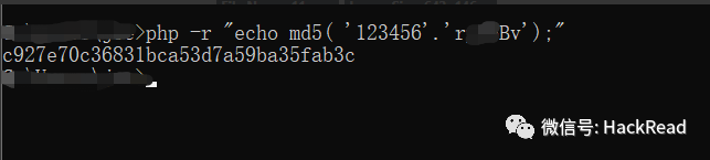 接下来就简单了,php输出一个密码为123456,salt为指定字符串的密文即可。