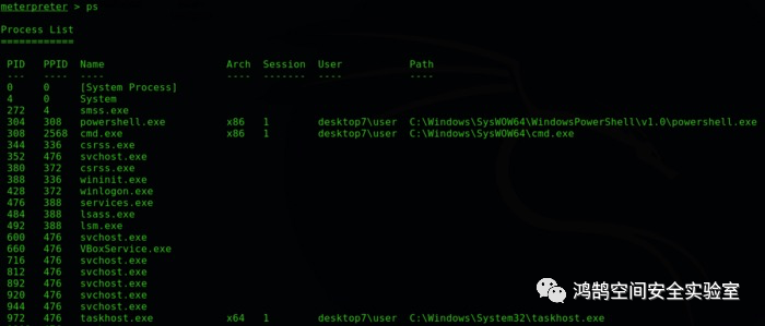 在攻击者的控制台中,Meterpreter工作正常,如下所示