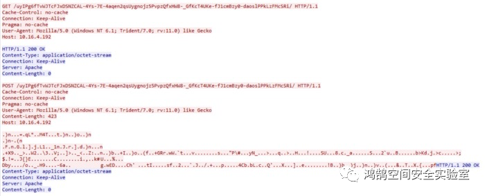 相同的相应阶段现在使用对防御者无用的数据进行编码,以识别从 IP 地址 10.16.4.192 下载的内容,换句话说,这意味着在这种情况下,攻击者将能够绕过旨在攻击的suricata签名在Meterpreter上,使我们的频道更安全,并减少通过网络命中被检测到的机会。