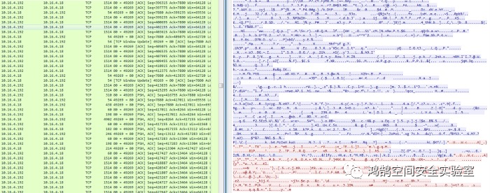 从防御者的角度来看,检查这些流量非常令人失望,因为这只是 TCP 流量、随机字节,从取证的角度来看,这里没有任何有用的东西。