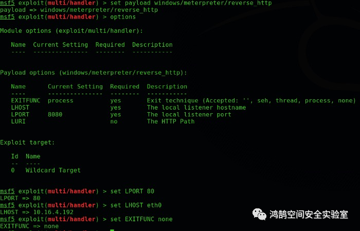 在攻击者机器上,正确设置处理程序需要以下选项: