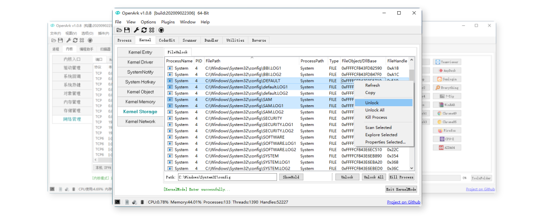 OpenArkOpenArk是一款Windows平台上的开源Ark工具. Ark是Anti-Rootkit(对抗恶意程序)的简写, OpenArk目标成为逆向工程师、编程人员的工具,同时也能为那些希望
