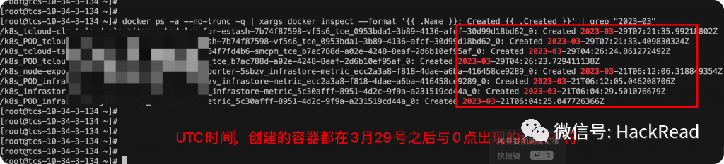 可以看到确实是有文件变动,很有可能是在3月29号这天,新起的容器服务导致ssh登录异常。查找3月29号创建的容器。