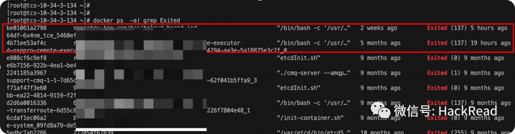 查看所有退出的容器,从异常退出的容器信息可推断只有k8s_ocloud-osppro-remote-executor_ocloud-osppro-remote-executor 容器符合时间要求。