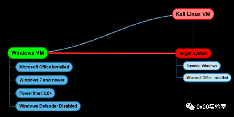 在这种情况下,我们将利用网络钓鱼技术在目标网络上获得初步立足点。对手可能会发送网络钓鱼消息以获得对受害系统的访问权限。所有形式的网络钓鱼都是通过社会工程学以电子方式传播的。网络钓鱼可以有针对性,称为鱼叉式网络钓鱼。在鱼叉式网络钓鱼中,特定的个人、公司或行业将成为对手的目标。更一般地说,对手可以进行无针对性的网络钓鱼,例如大规模恶意软件垃圾邮件活动。 对手可能会向受害者发送包含恶意附件或链接的电子邮件,通常是为了在受害者系统上执行恶意代码。网络钓鱼也可能通过第三方服务进行,例如社交媒体平台。网络钓鱼还可能涉及社会工程技术,例如冒充可信来源。我们的目标是生成一个包含宏的恶意 office 文档,该宏将在执行时为我们提供目标系统上的反向 shell。下图概述了我们的攻击方法以及该过程中涉及的各个步骤。![]()