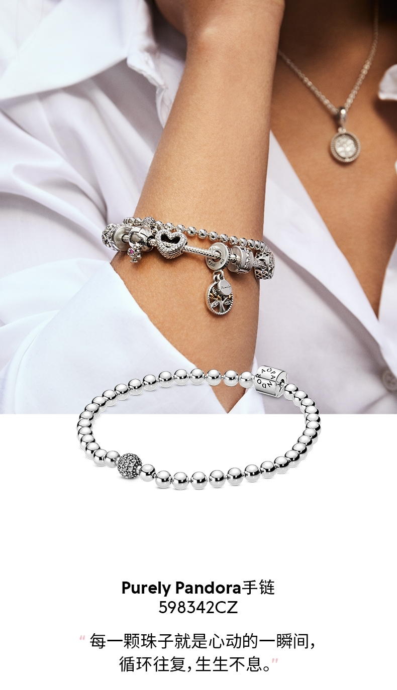 手链设计简单大方,圆珠造型经典耐看,一颗闪腰锆石点缀其间,让手链注入活力,更加灵动活泼。一颗珠子,就是一个心动瞬间。这串手链,象征着我的生命里每一个有你的故事。关于色差:商品拍摄受器材、光线、环境等影响,或造成实物颜色与图片存在细微差异,请以实物为准。我们精心挑选的两款手链目前PANDORA的官方旗舰店也正在热销,官方售价628元。![]()